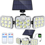 مجموعة أضواء خارجية تعمل بالطاقة الشمسية مزودة LED تقدم إضاءة ساطعة تصل إلى 2500 لومن! تتميز بـ 3 أوضاع عمل (استشعار حركة/إضاءة خافتة/ثابتة) ولوحة شمسية قابلة للتعديل. مقاومة للماء IP65 وتأتي مع ريموت كنترول لسهولة التحكم. مثالية للحدائق، الجراجات، والأماكن الخارجية.